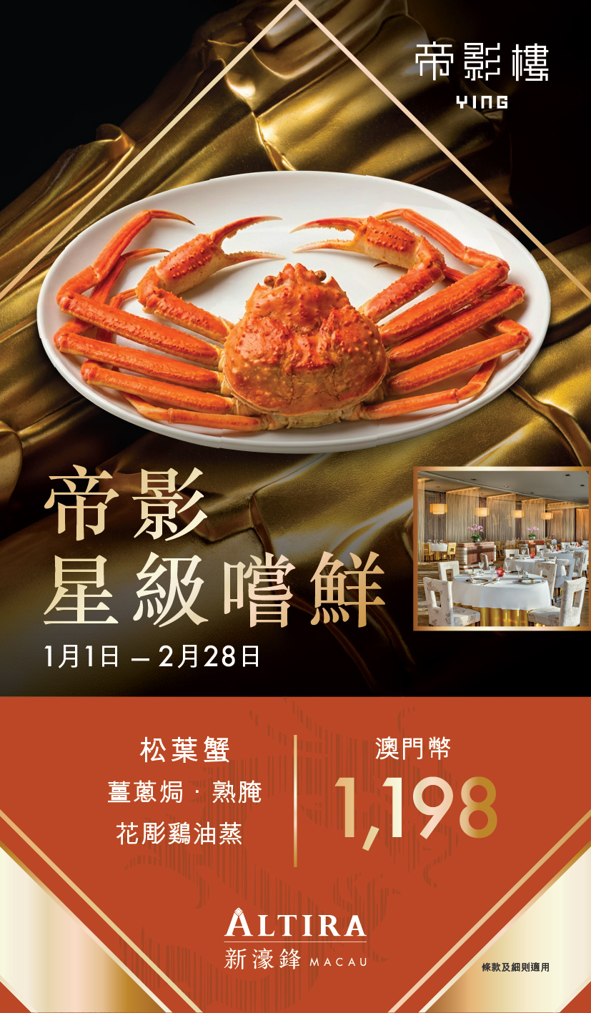「帝影樓」屢獲《米芝蓮港澳指南》頒發的一星評級,這裡由廚藝精湛的主廚帶領才華橫溢的烹飪團隊,傾注創新意念演繹傳統粵菜,並詮釋中菜的昇華至更高層次。
